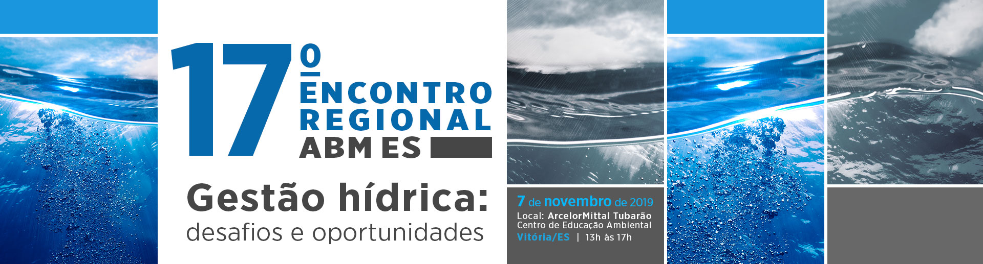 A ABM, por meio da Regional ES, promove no dia 07 de novembro de 2019, um encontro com palestras e debate gratuito na CEA: Centro de Educação Ambiental da ArcelorMittal Tubarão - Serra/ES. O tema principal 'Gestão hídrica: Desafios e Oportunidades' norteará os debates.
